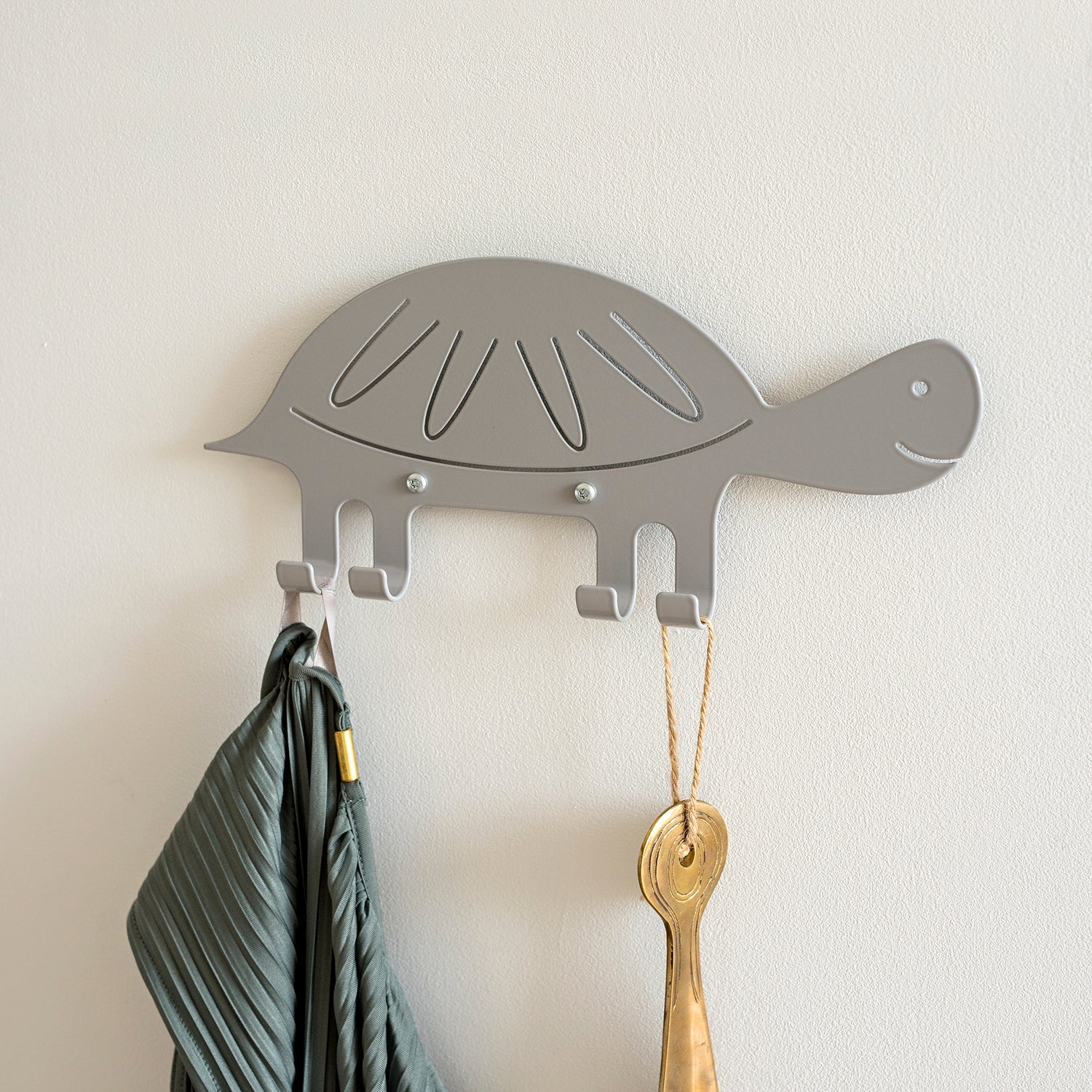 This grey turtle wall hook is designed to appeal to both kids and their parents. It aims to play a useful and functional part in everyday family life. It encourages children to organize clothes, accessories and toys by themselves.